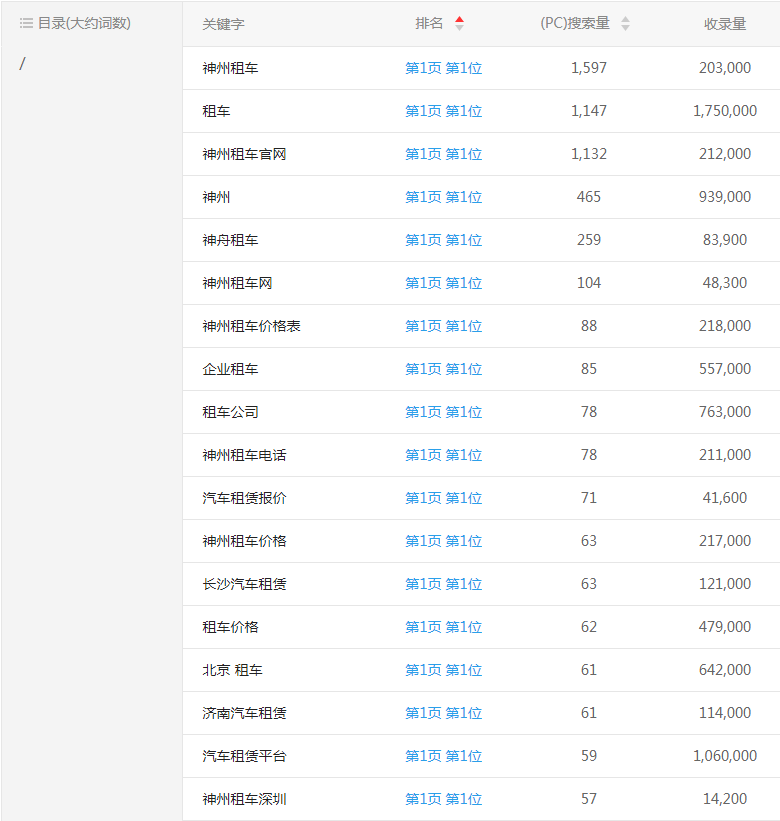 神州租車網站優化案例